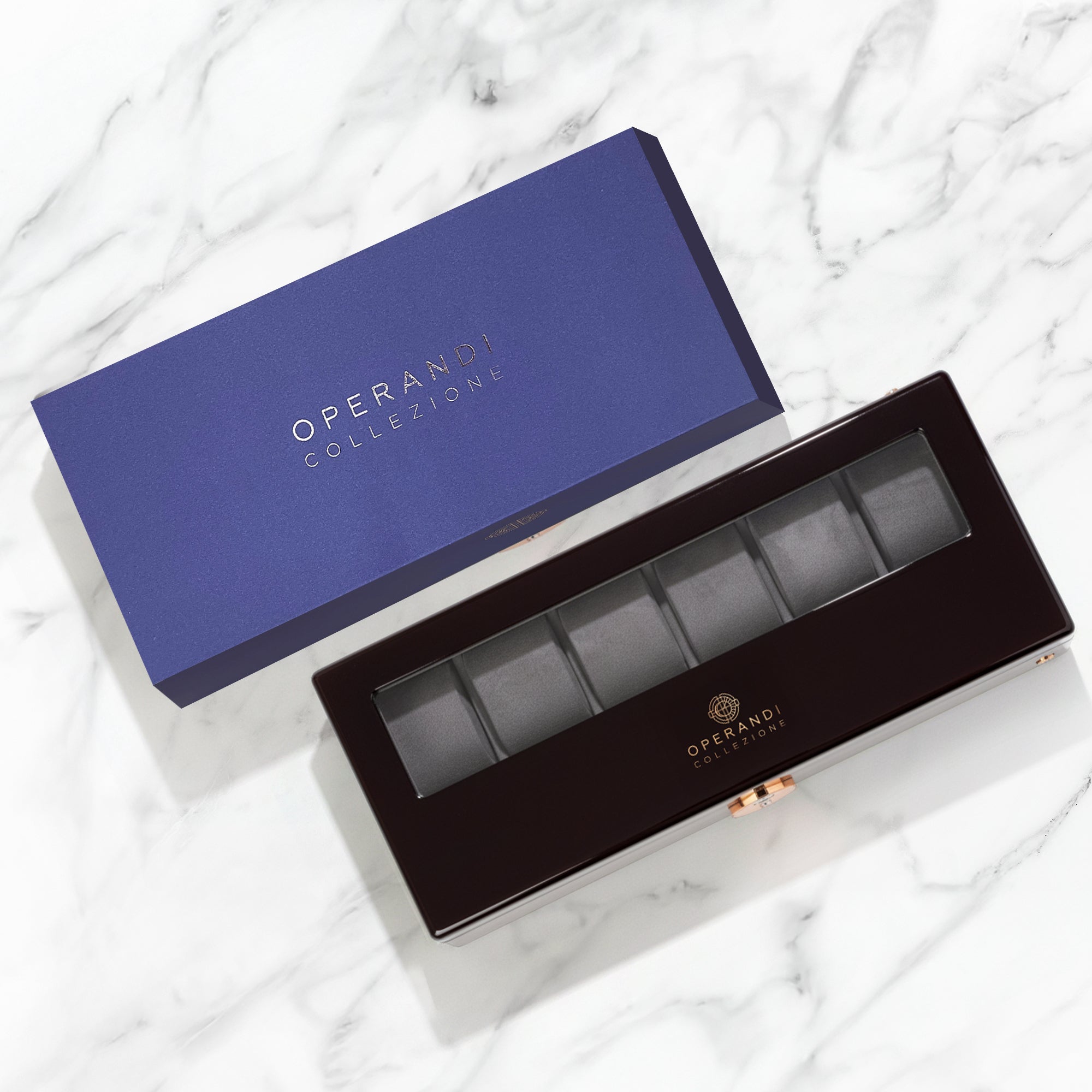 The Eminence Kit package includes one Limited Edition Watch Case, one WTA Grigio Telesto, one WTA Pista Blue, one WTA Bianco Avus, and one Operandi Sella Marrone, along with four pairs of premium gloves, four polishing cloths, and four handwritten notes. With a retail value of $6,000, this exclusive set represents the ultimate point for those ready to embrace the challenge with confidence and style.