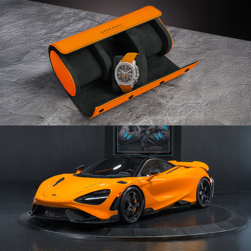 Introducing the newest 2026 collection from Operandi Collezione: the MSO PAPAYA Multi-Compartment Watch Roll. ONLY 88 rolls available for pre-order. Inspired by the bold McLaren Special Operations (MSO) this roll is a statement piece of luxury!