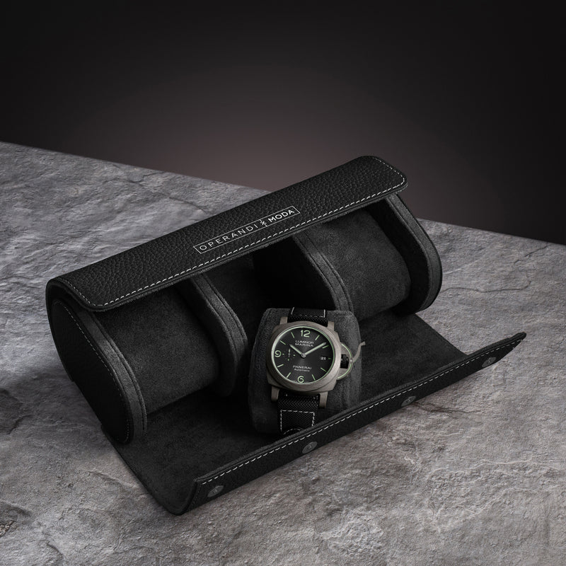Introducing the MODA Black Series Luminous Signature Watch Roll a one-of-a-kind creation from Operandi Collezione in collaboration with MODA Club. LIMITED EDITION and ultra-exclusive, this watch roll is designed for the collector who values understated elegance with a bold, innovative twist.