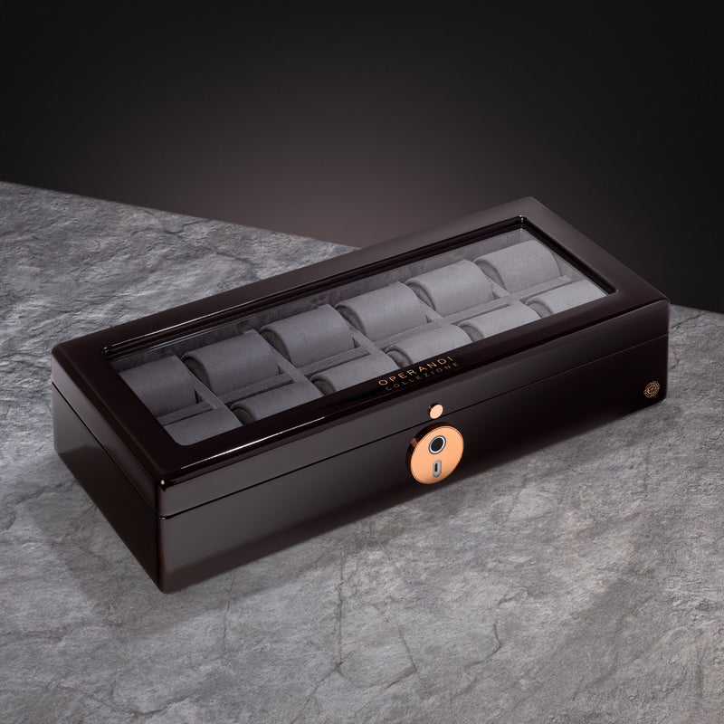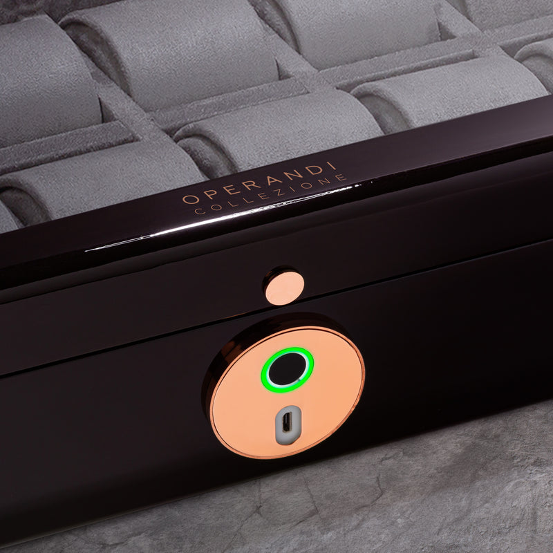 We are thrilled to introduce the Operandi Collezione Upgraded Forziere Imperio Full Window Limited Edition with a biometric lock—an exquisitely curated piece crafted exclusively for watch collectors. With only 50 of these bespoke boxes available, this is a rare and highly sought-after addition to any discerning collection.