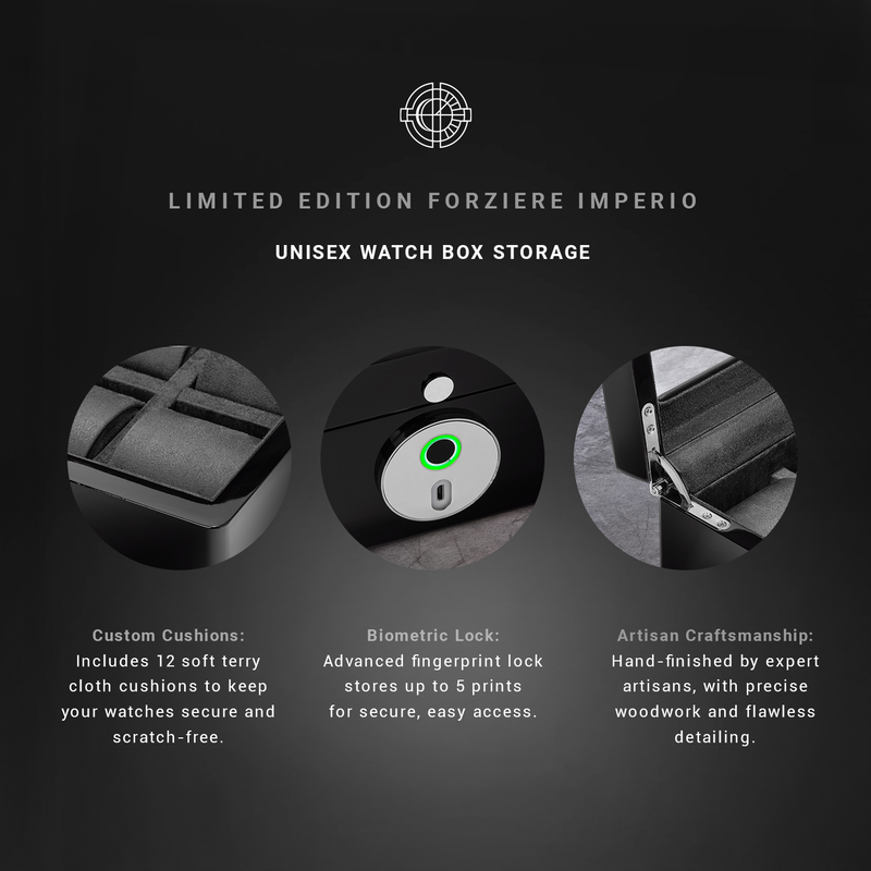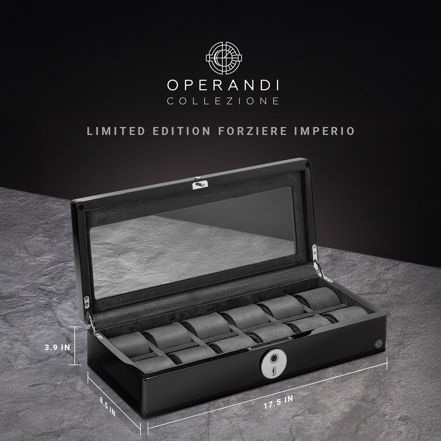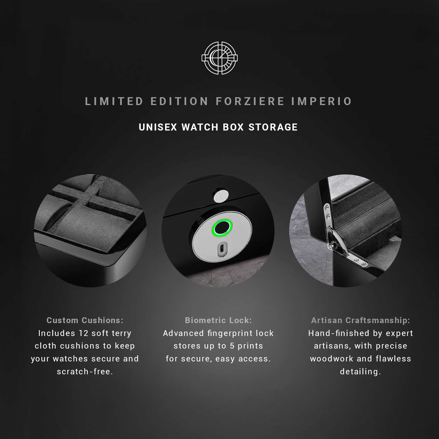 We are thrilled to introduce the Operandi Collezione Upgraded Forziere Imperio Full Window Limited Edition with a biometric lock—an exquisitely curated piece crafted exclusively for watch collectors. With only 50 of these bespoke boxes available, this is a rare and highly sought-after addition to any discerning collection.