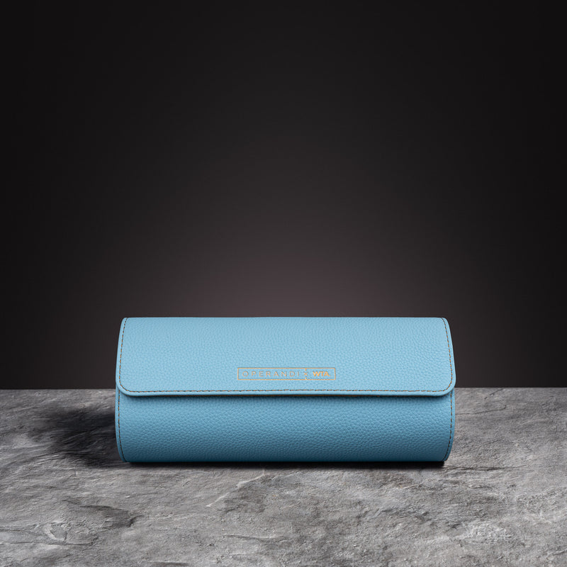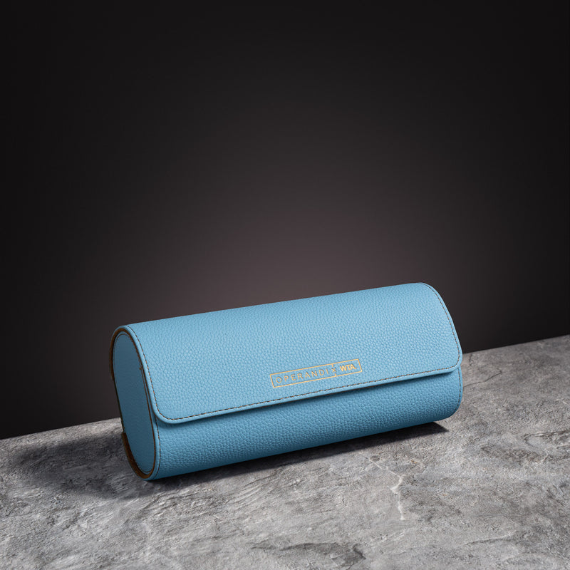 Experience the epitome of luxury with the Operandi Pista Blue Multi-Compartment Watch Roll, masterfully created from premium Italian calfskin sourced from Florence—the heart of world-renowned leather craftsmanship. This exquisitely crafted watch roll blends artisanal elegance with contemporary design, ensuring your watches are carried in style and protected with unmatched precision.